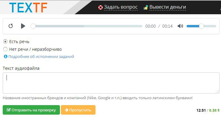 Ответ банален: за выполнение заданий. А вот зачем их исполнять - сейчас растолкуем. Прежде всего стоит упомянуть о том, что наш сервис не занимается благотворительностью. Мы получаем от компаний аудиоматериалы с целью их расшифровки в текстовый формат. За это получаем определенные выплаты, которые идут на вознаграждения пользователям, выполнявшим ту самую работу. Имеются различные типы, как для новичков, так и для более матерых партнеров, выплаты, соответственно, разнятся.