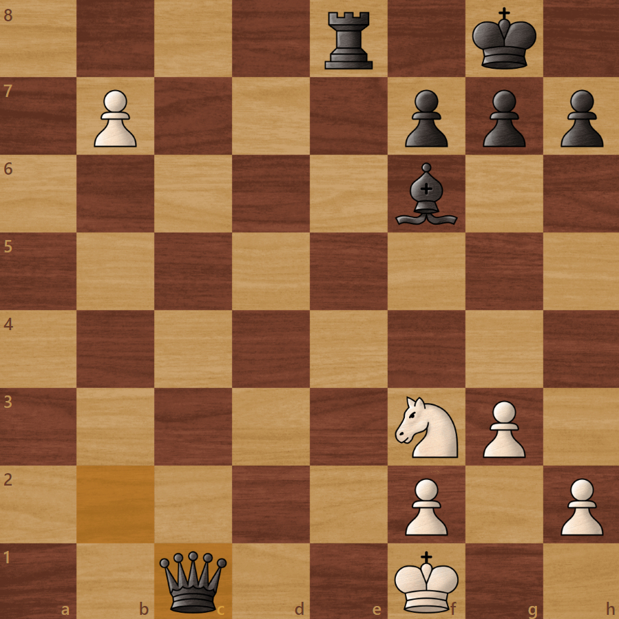 7. Если после b2 белые ответят Ke1, то bxc1=Ф 35. Фxc1 Лxc1: