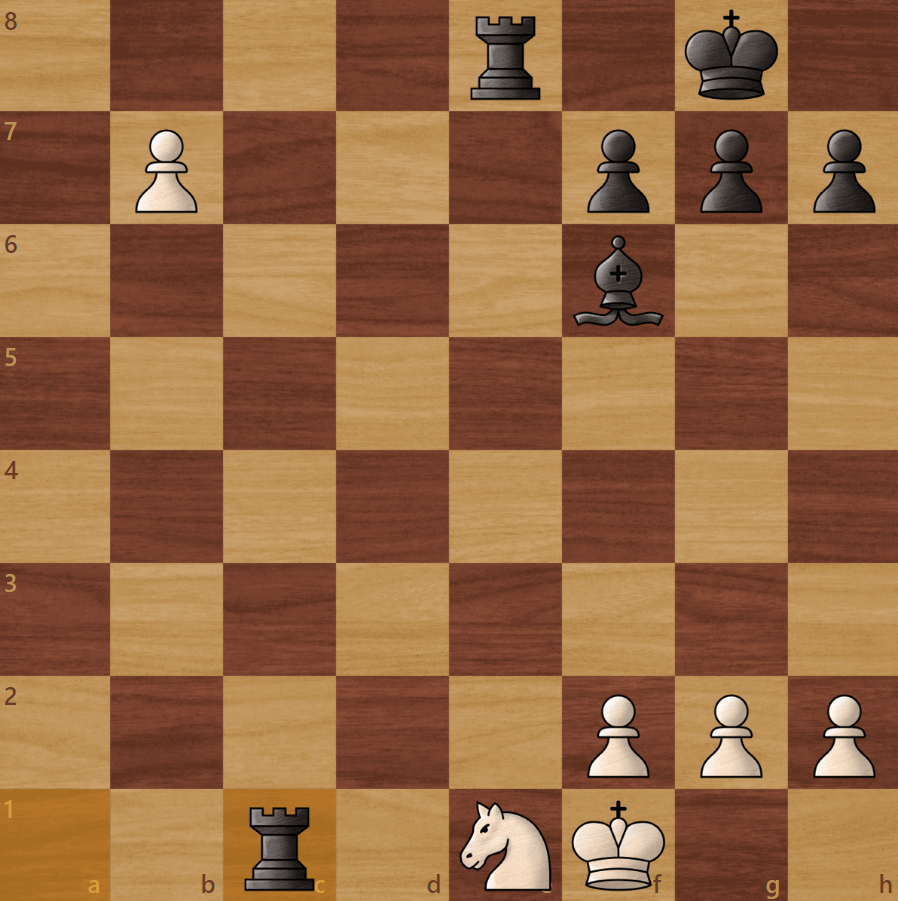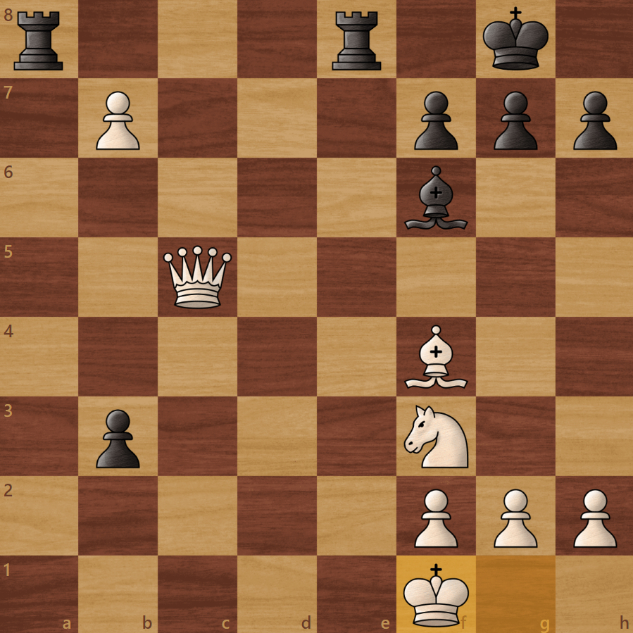 На доске позиция после 31-го хода белых в партии между немецким шахматистом Куртом Карлом Альфредом фон Барделебеном и еще молодым Александром Александровичем Алехиным (4 чемпион мира по шахматам в 1927—1935 и 1937—1946 годы). Партия была сыграна в Дюссельдорфе в 1908 году.