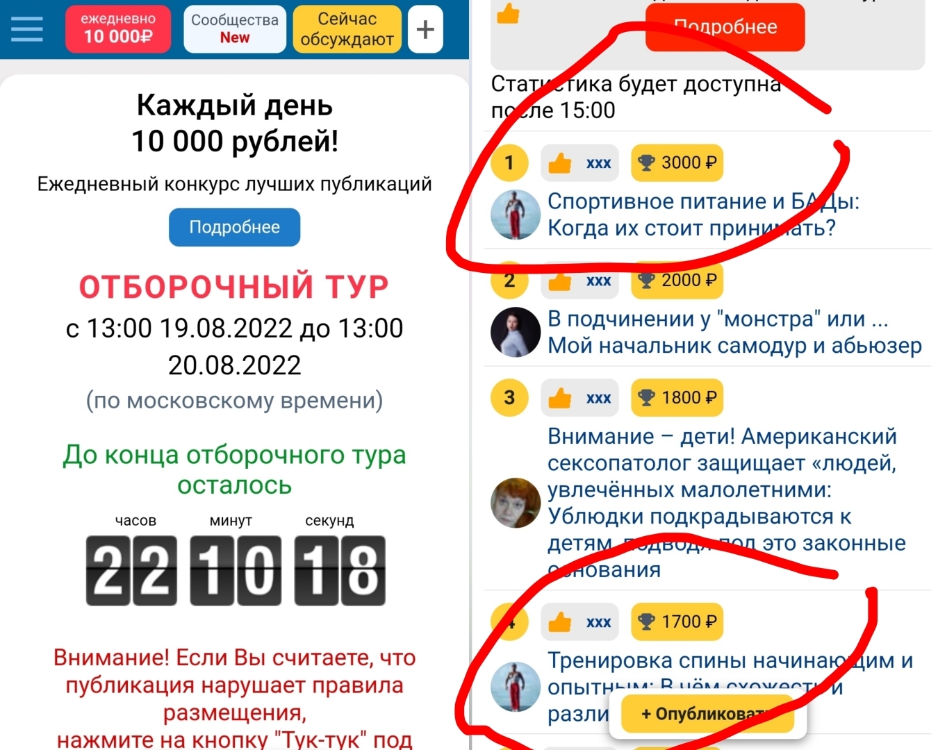 Как видите одна моя статья получила 3000 р, а вторая - 1700 р.