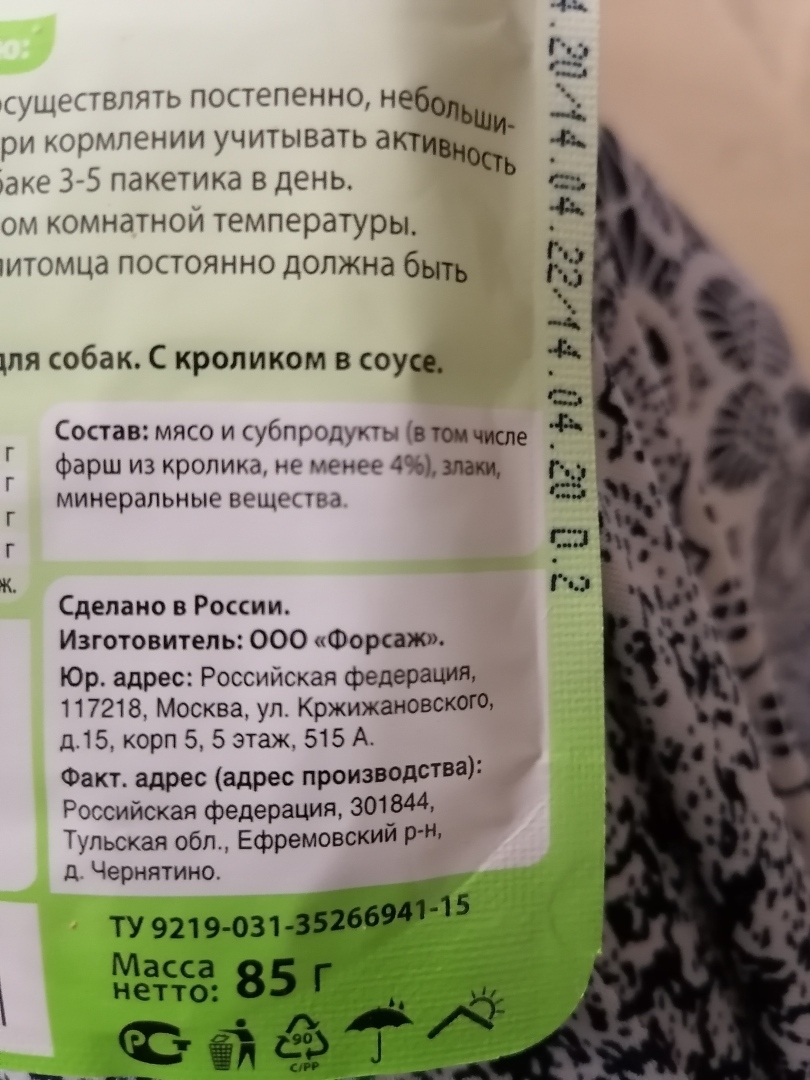 Так это вы ратуете за казенный корм. А я своей собачке варю еду. А этот пакетик я в магазине сфотографировала, первый, что под руку попался.