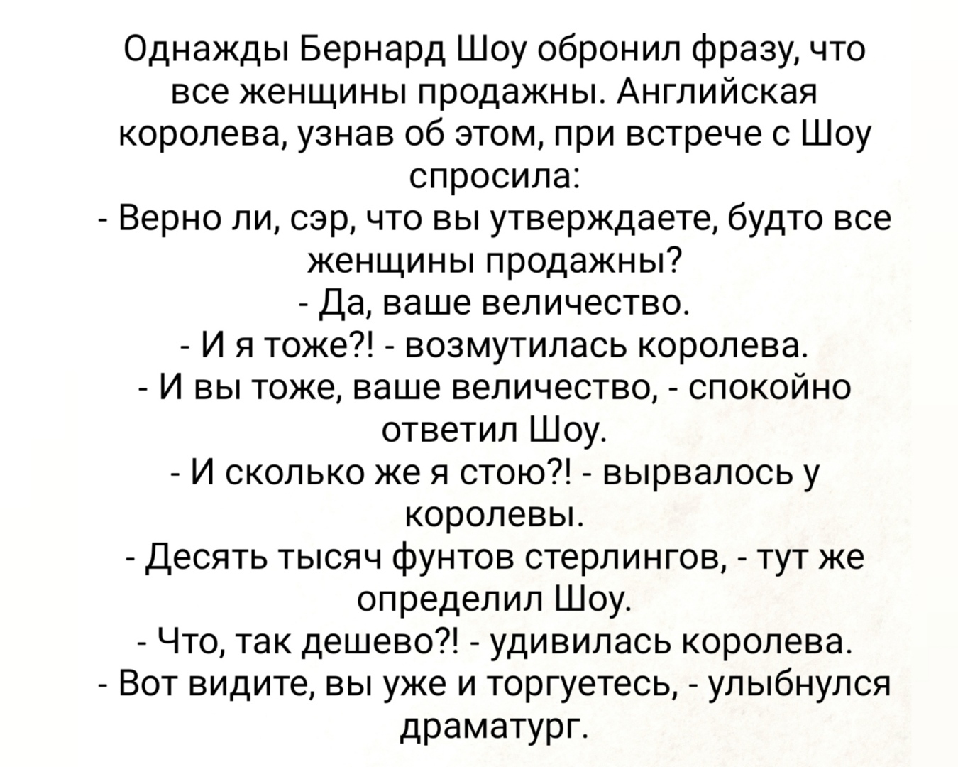 С этим многие начнут спорить, но давайте посмотрим, что сказал классик Бернард Шоу: