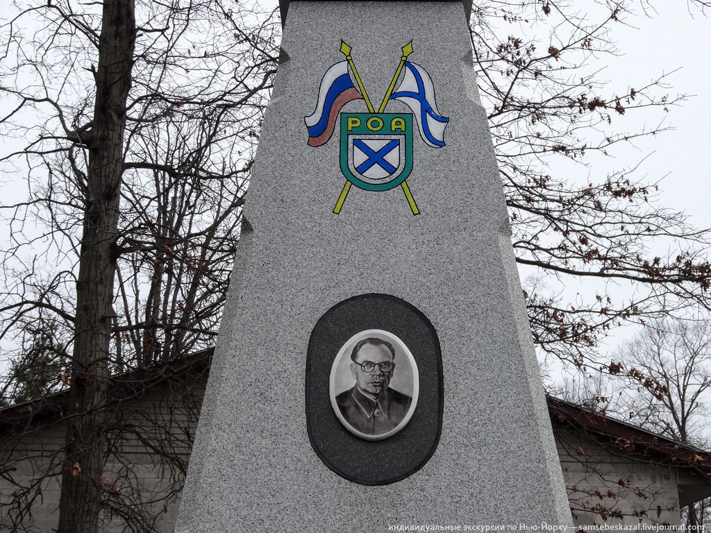 Есть ссылка на то, что в РОА «флаг с орлом и бело-сине-красный цвета» были ранее отвергнуты А. Розенбергом (уполномоченным по делам оккупированных восточных территорий), которому, между тем, «понравился синий Андреевский крест на белом фоне, задуманный в виде небольшого щитка на красном знамени» (один из проектов «соответствовал даже бывшему флагу дома Романовых»[2], но был также отвергнут). А рисовать картинки пиндосские шестёры мастера.