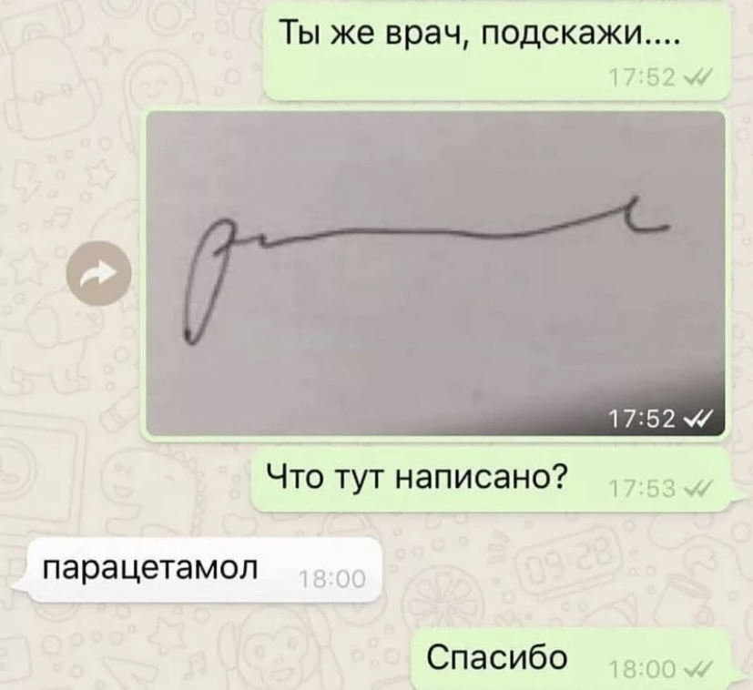 Однако у меня вдруг возник вопрос. А почему шутки про почерк касаются только врачей?