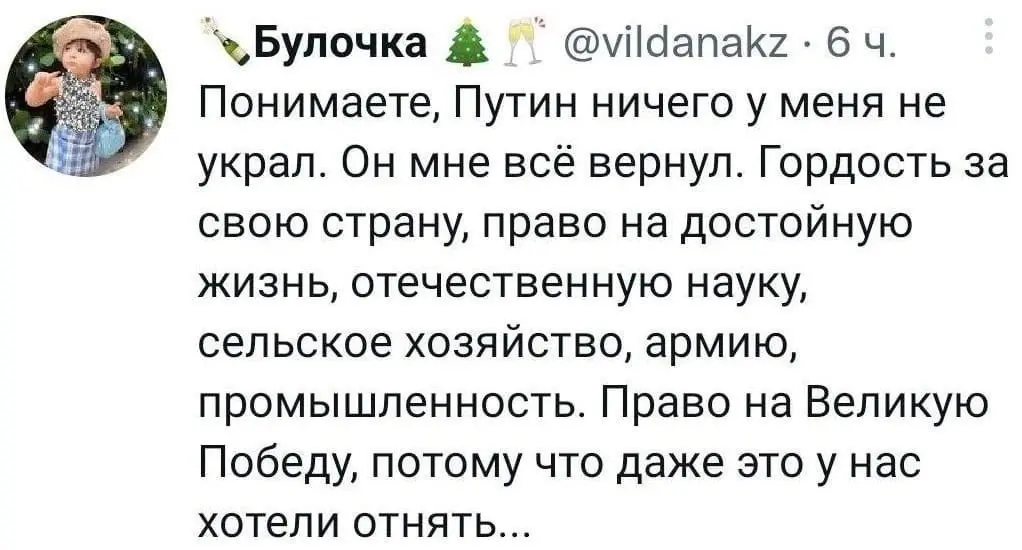 Тут на сайте есть много лже-патриотов и «обиженных», пишут гадости про нашего любимого и всенародно избранного президента России Владимира Путина !! Я пишу обиженных не просто так. На что же вы обижены граждане нытики и призывающие к массовым нытингам и крича с пеной у рта, что Путину пора уходить? Некоторые пишут, а что сделал Путин? А что мало он сделал для страны, мой вам вопрос ??? Остановил братоубийственную войну в Чечне; вернул исторически принадлежащий России Крым; остановил мафиозные и криминальные войны 90-х; повысил зарплату многим государственным служащим, вернул престиж службы в российской армии; повысил пенсии и многое другое; при нём стали выплачивать материнский капитал; при нём страну наконец стали уважать на западе. Люди перестали стоять в километровых очередях с талонами, чтобы купить колбасу. Если у вас не хватает денег на новенький айфон, это не значит, что нужно за денежки писать дебильные комментарии и винить во все руководство страны, не хватает денег, так подними свой зад с дивана и пойди своими руками и потом заработай эти деньги !!!