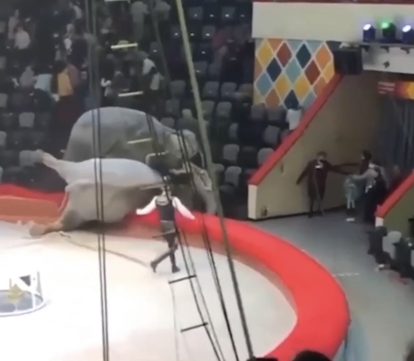 Слоны не поделили арену и устроили драку в цирке.(Видео).