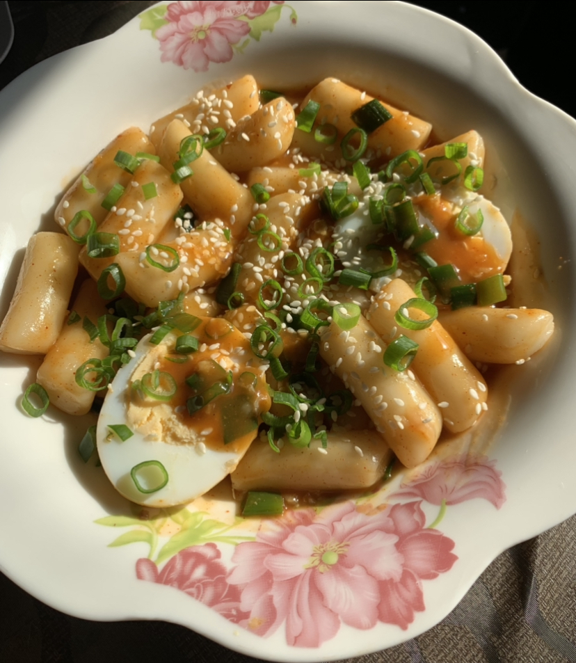 Рецепт прост: в кипящей воде отвариваем рисовые палочки 20-30 минут. Откидываем на дуршлаг, промываем в холодной воде. В сковороду вок наливаем 0,5 л воды, добавляем 1,5 столовые ложки сахара, 1 чайную ложку перцовой пасты, выкладываем ттоки, тщательно размешиваем. Когда вода закипит добавляем 1,5 столовые ложки соевого соуса, 2 - 3 измельчённых зубчика чеснока, варим 3 минуты на сильном огне, после чего добавляем зелёный лук и варенные яйца. Отвариваем ещё пару минут и убираем с плиты. Посыпаем кунжутом и зеленью🔥