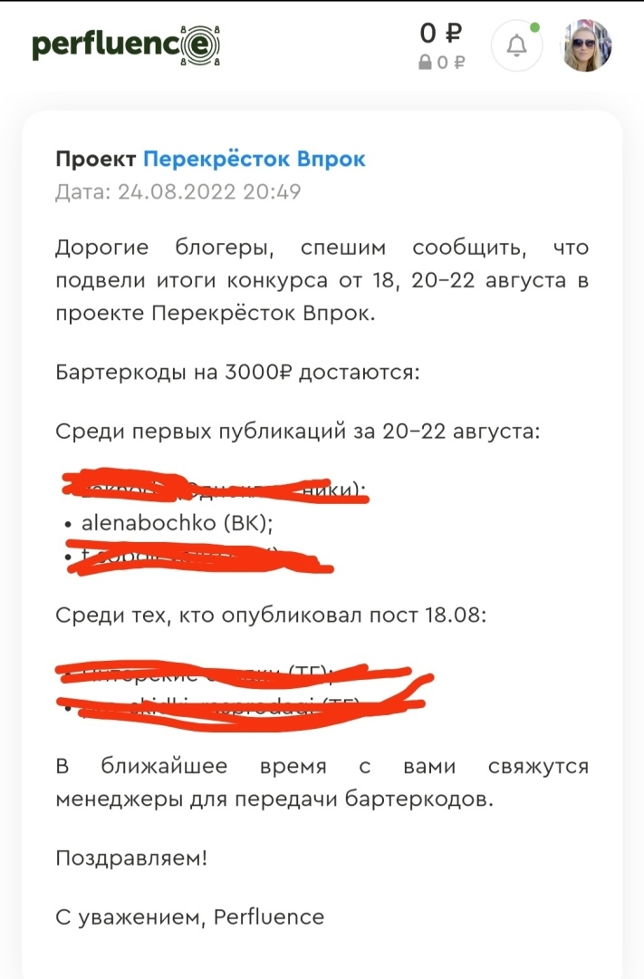 И аллилуйя, мне сегодня написала менеджер, что я выиграла купон на 3000 в перекрёстке. От меня остаётся только скачать приложение, выбрать товар, ввести код и получить свой приз☺.