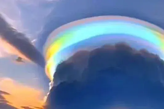 Оказалось, что не только жители Хабаровского края могли видеть эту красоту, но и, в тот же день, жители Южного Китая наблюдали редкое радужное облако, которое называется "пилеус" в форме кольца.