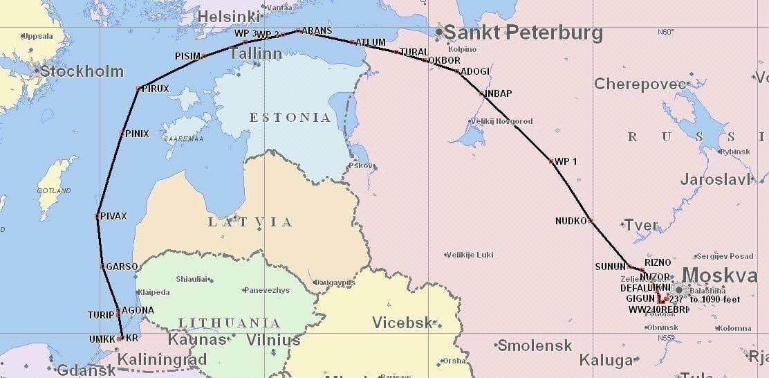 В Калининград полет не менее чудесатый.