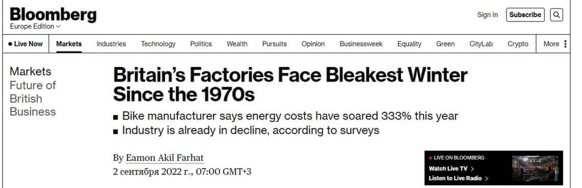 Британские заводы ожидает самая мрачная зима с 1970-х годов — Bloomberg.