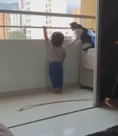 Толи этот кот выдрессирован, или он сам настолько умён. Но охранник из него получился отменный, не каждый бы человек охранник уделял бы такое внимание на ребёнка. Честно скажу: - это видео смотрится мило. Порой думаешь, насколько животные бывают разумнее, чем люди-человеки...