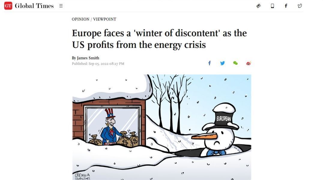 Европе грозит "зима недовольства", пока США наживаются на энергетическом кризисе.