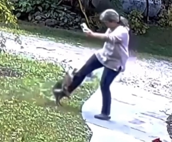 На кадрах ниже представленного видео ролика видно, как лиса незаметно подбежала к женщине и схватила её за ногу, вследствие чего между ними началась жестокая схватка.