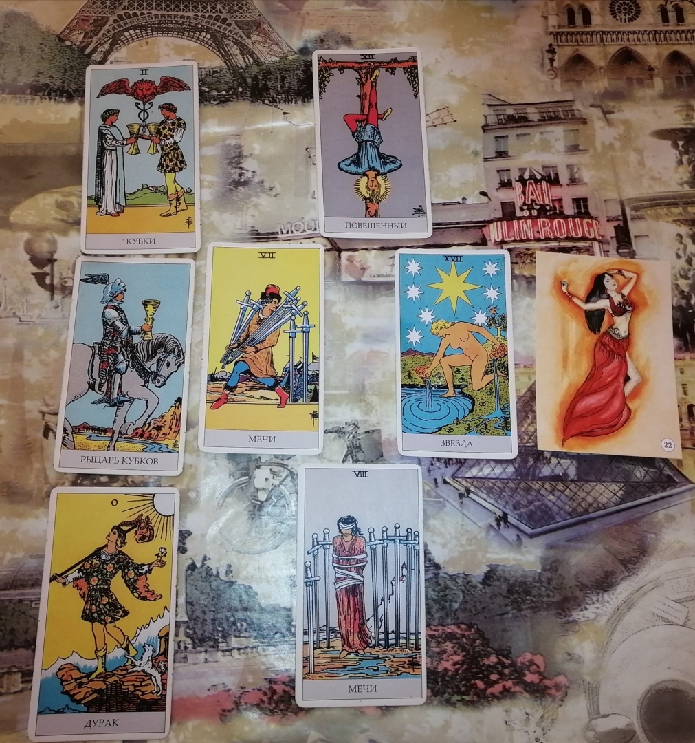 Мой ответ по картам Таро: "карты показали, что да, действительно чувства у него к Вам есть, но подсознательно он воспринимает Вас как ребёнка что ли, Вы для него, как новое начало, в глубине души Вы для него, как маленькая, наивная девочка, которая верит во всё, что ей скажут... Вы спросили, что у Вас сейчас происходит, вышла карта 7-ка Мечей, которая означает: "воровство, обман, мошенничество, измена". Сейчас Вам нельзя думать, что Вы звезда и всё наладится само собой, Вы - звезда - несомненно, но карта выпала в сегменте "чего делать не стоит", не стоит Вам питать иллюзий, надежд по отношению к нему, нужно Вам сейчас остановится и войти в осознанное состояние, это помогает делать медитация и задавать себе и Вселенной вопрос, зачем он Вам, зачем сейчас даны Вами эти отношения, для чего это нужно, послушайте себя, что Вы чувствуете... Потому что карта 8-ка мечей, указывает на внутреннее ограничение зависимость от партнёра, невозможность двигаться вперёд...