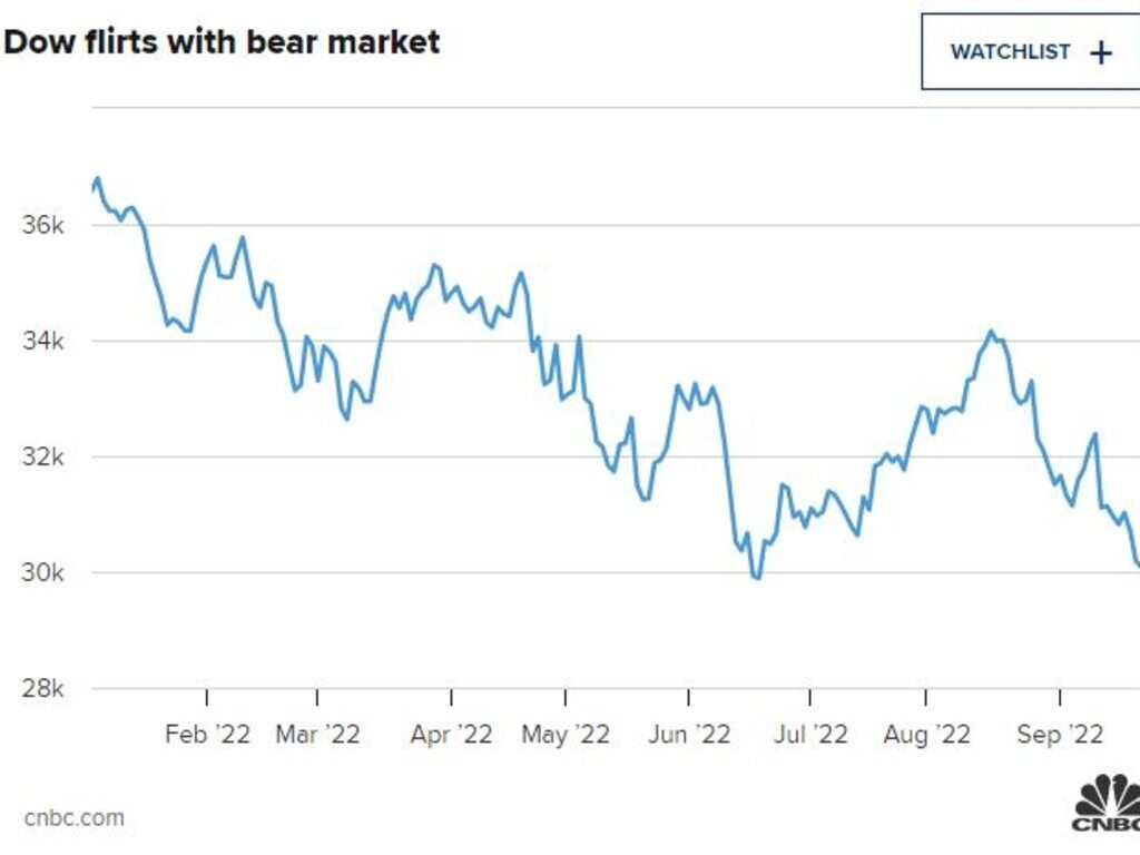Массовая распродажа Уолл-стрит в одночасье заставила Dow заигрывать с медвежьим рынком, поскольку инвесторы, похоже, смирились с тем фактом, что ФРС отказалась от надежд на «мягкую посадку» и продолжит агрессивно повышать процентные ставки для борьбы с инфляцией, даже если это означает более глубокую рецессию.