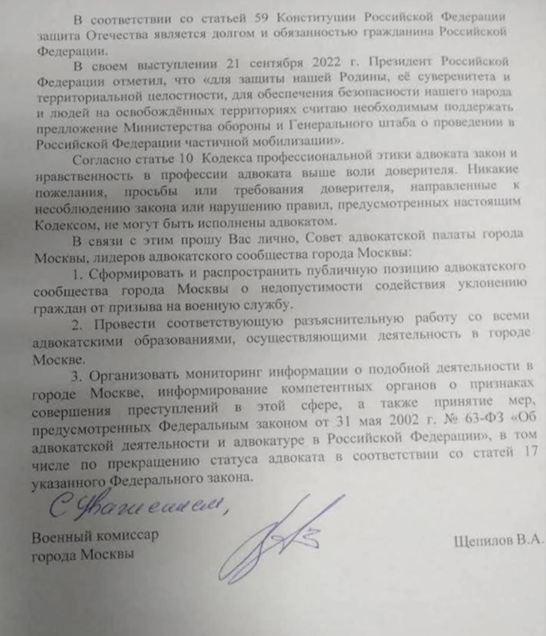 Столичным адвокатам пригрозили уголовной ответственностью за помощь уклонистам.Может ли юридическая консультация быть преступной?