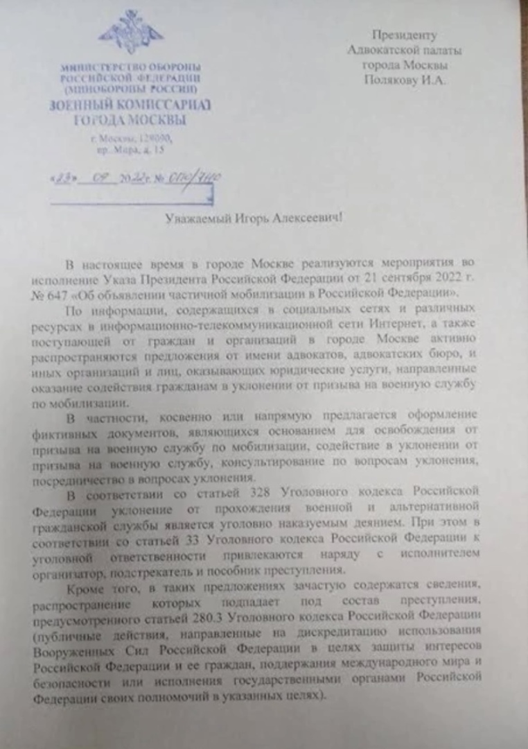 В виду с изменениями ряда законов связанных с частичной мобилизацией, многие люди стали обращаться в адвокатские конторы с целью, чтобы уклониться от призыва в армию.