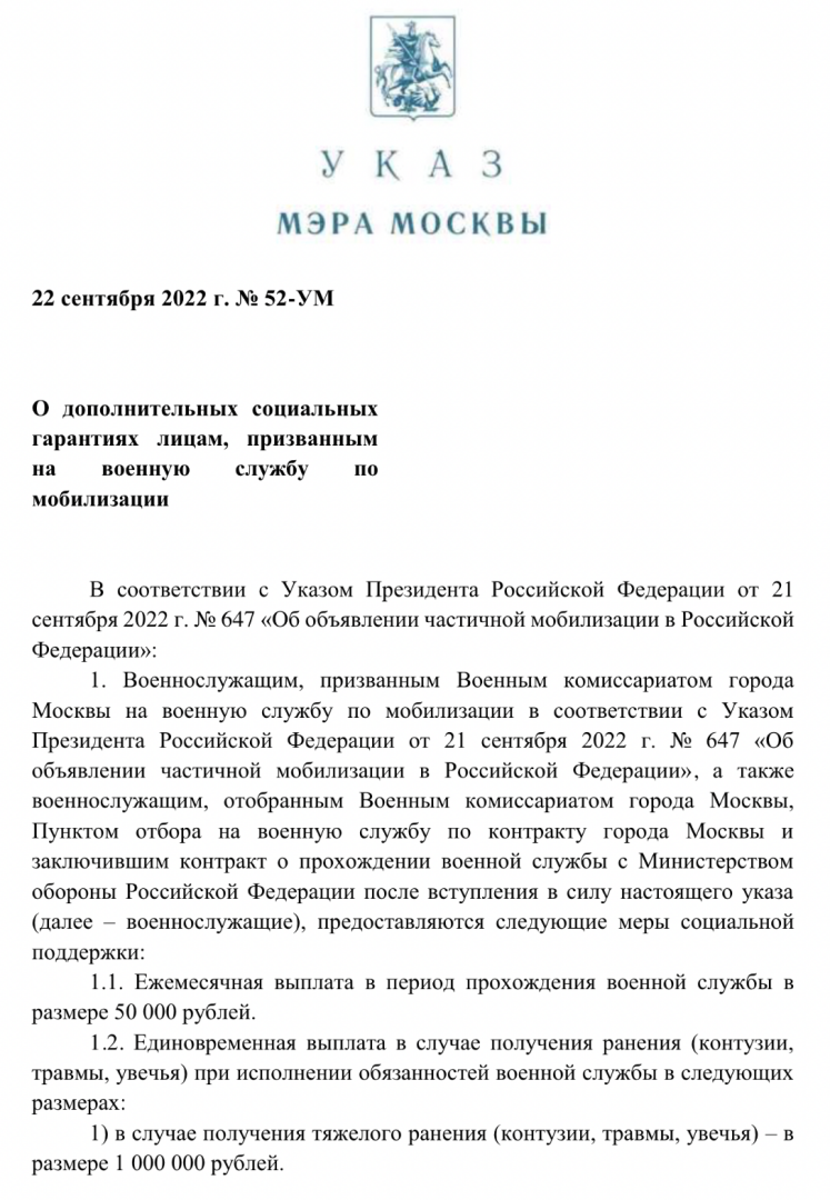 Так например, в Москве, Собянин сделал для мобилизованных в Москве, денежные выплаты по 50.000 руб. каждый месяц.