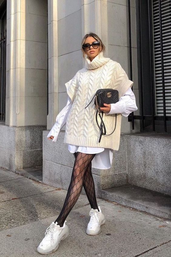 Наденьте свитер поверх платья