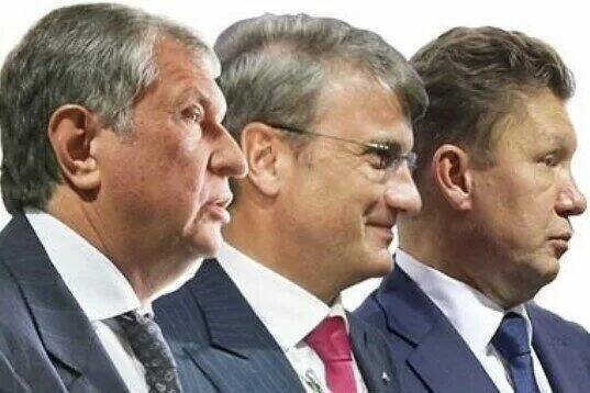 Однако, обращусь к триединству, изображенному на фото. Статей о личных заработках этого триединства, этого олигархата от государства, в сети полно. Кто-то говорит, что каждый из них зарабатывает 3 миллиона рублей в день, кто-то говорит, что все пять миллионов рублей в день. Я не знаю, сколько они получают. Да и негоже, конечно, деньги в чужих карманах считать. Но вроде как работа-то у них на госпредприятиях... Поэтому, и карманы... гм... не совсем чужие, а? Да и Родина в опасности!