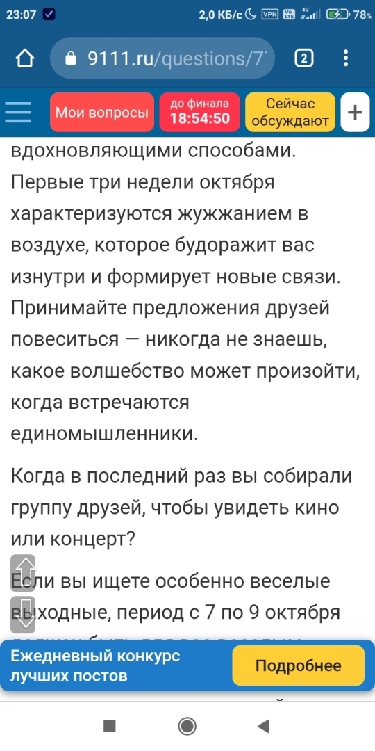 Отношения выходят на первый план в этом месяце, так как вы вдохновлены, чтобы насладиться последней частичкой хорошей погоды и общаться с людьми в вашей жизни веселыми и вдохновляющими способами. Первые три недели октября характеризуются жужжанием в воздухе, которое будоражит вас изнутри и формирует новые связи. Принимайте предложения друзей повеселиться — никогда не знаешь, какое волшебство может произойти, когда встречаются единомышленники.