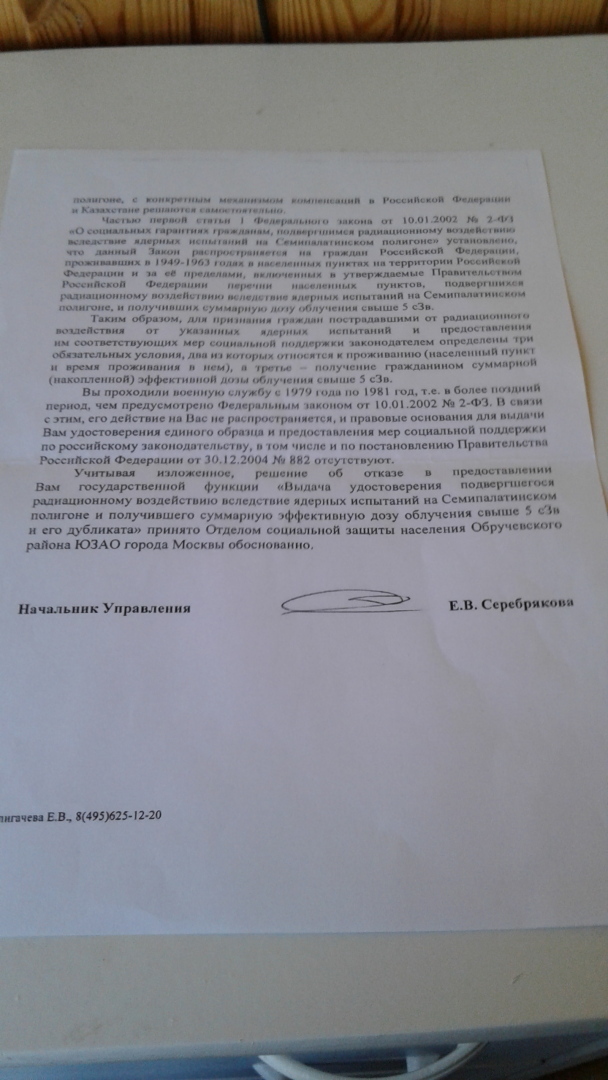 А что вы считаете сколько пересекли люди границу вот вчера была по тв передача в Казахстан пересекли границу за месяц 200 тысяч человек а обратно 147 тысяч человек а кто уехал я думаю на то у них есть причина вы лучшие объясните почему в России не выполняет социальные горантии семипалатинского ядерного полигона закон есть а льгот нет депортамент труда и социальной защиты населения г москва отказывает о включении в реестр учёта граждан подвергшийся радиационному воздействию вследствие радиационному воздействию вследствие ядерных испытаний на семиполатинском ядерном полигоне законы есть а льгот нет объясните пожалуйста