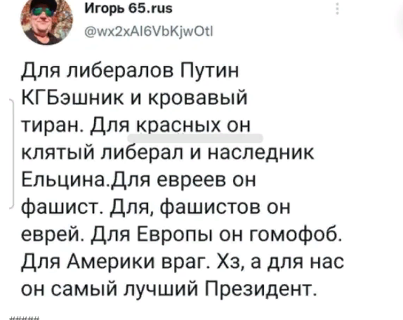Россия не Путин, Путин - не Россия. Пора уже понять, что этот лиходей только говнит России.