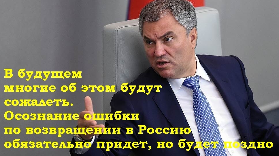 В июле Володин назвал предателями тех, кто покинул Россию после начала конфликта на Украине. Предательством он считает и критику российской спецоперации.