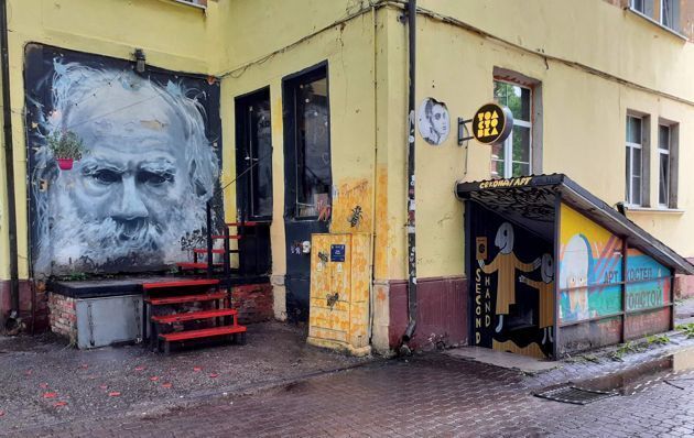 Администрация Центрального района требует закрасить изображение с Даниилом Хармсом. Граффити находится на переднем фасаде здания. Изображение и надпись выполнены без разрешения районной администрации.