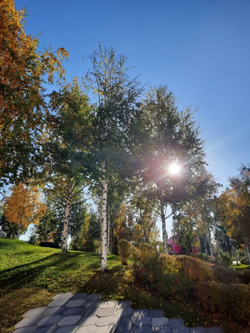 В солнечную погоду и осенью очень красиво! Всё так яркими красками сверкает, солнце светит и тепло ещё согревает...