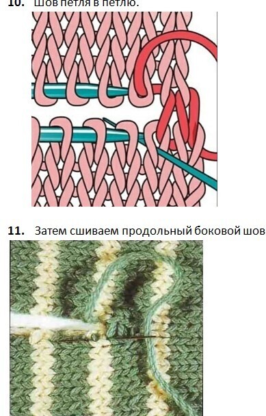 10. и 11. - шов петля в петлю для мыска и продольный шов - см. картинки.
