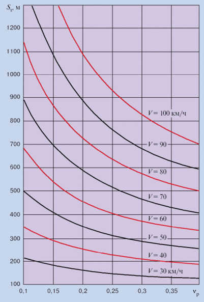 У нас есть график тормозного пути грузового поезда в зависимости от скорости. Графики даны для полного служебного торможения т. е. с максимально допустимым тормозным усилием, экстренное торможение отличается от служебного только скоростью разрядки тормозной магистрали, т. е. временем срабатывания тормозов. Экстренное торможение применяется в самых крайних случаях на усмотрение машиниста, в некоторых случаях применение тормозов может иметь более тяжелые последствия чем их не применение, например, увидев на путях человека в 100 метрах, тормозить не имеет смысла, машинист просто сообщит диспетчеру что произошел наезд.
