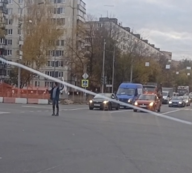 Однако, этот кошмар длился не долго, так как на дорогу вышел парень, решивший исправить обстановку, заменив светофор и сотрудников ГИБДД.
