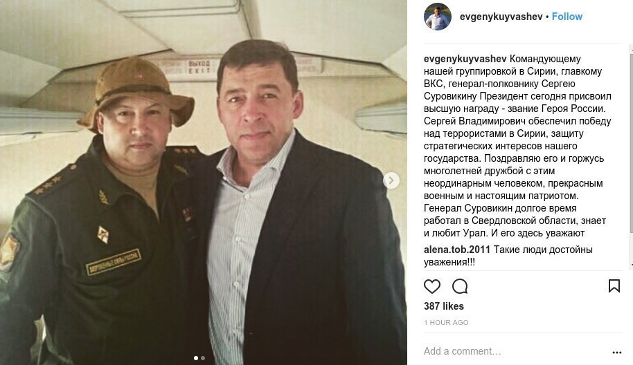 "-Знаю Сергея Владимировича Суровикина 15 лет. Уверен, что под его руководством, спецоперация на Украине завершится быстро и успешно! "-сказал он.