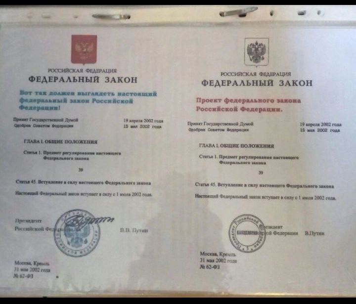 И сравните с тем, чего нам тут впарили про т.н. "мобилизацию" - ни подписи, ни герба, ни государственной печати. На каком основании в такой огромной стране, как Россия, вдруг началась т.н. "частичная мобилизация"? На каких основаниях все это произошло? На основании какой-то непонятной бумажки без подписи Президента, без государственной печати и штампиком Канцелярии?