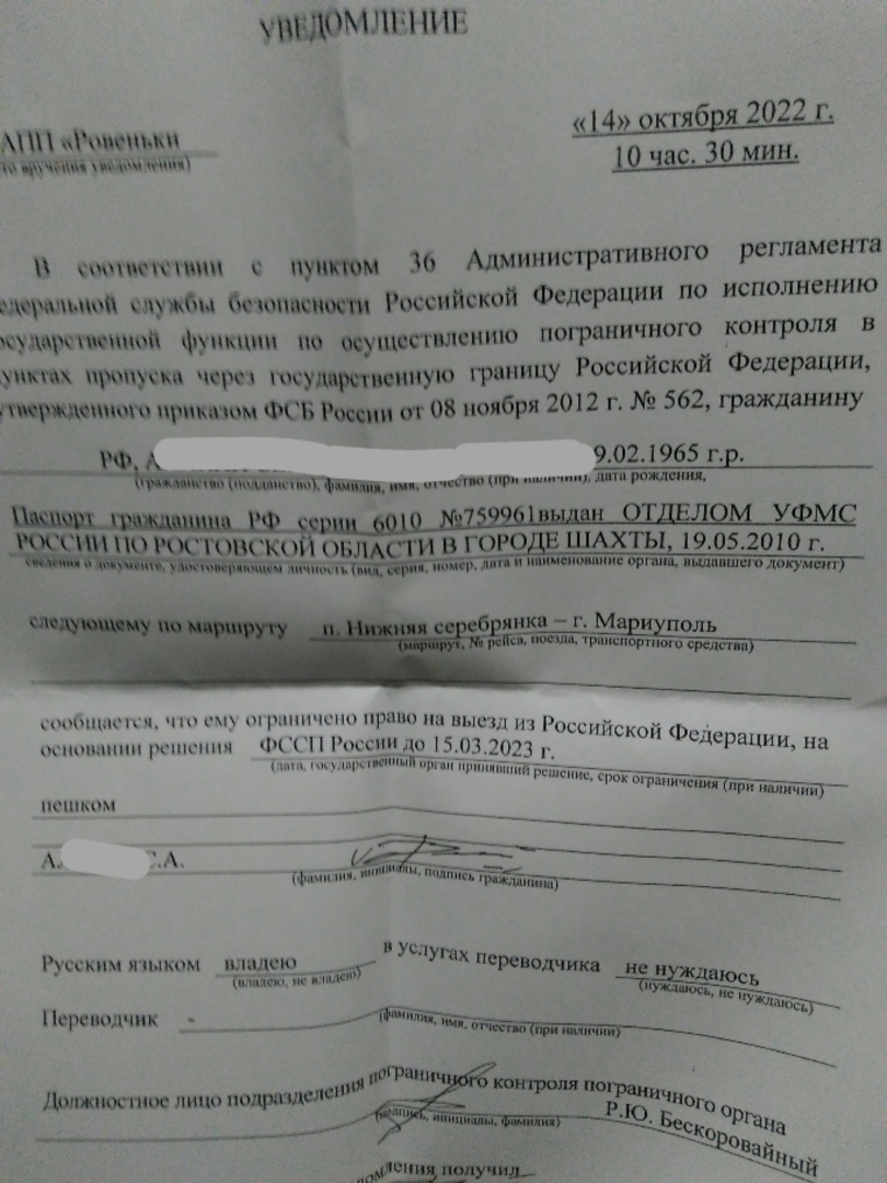 не стыкуется. На 14 октября Мариуполь - часть РФ. То есть нет выезда за пределы РФ.