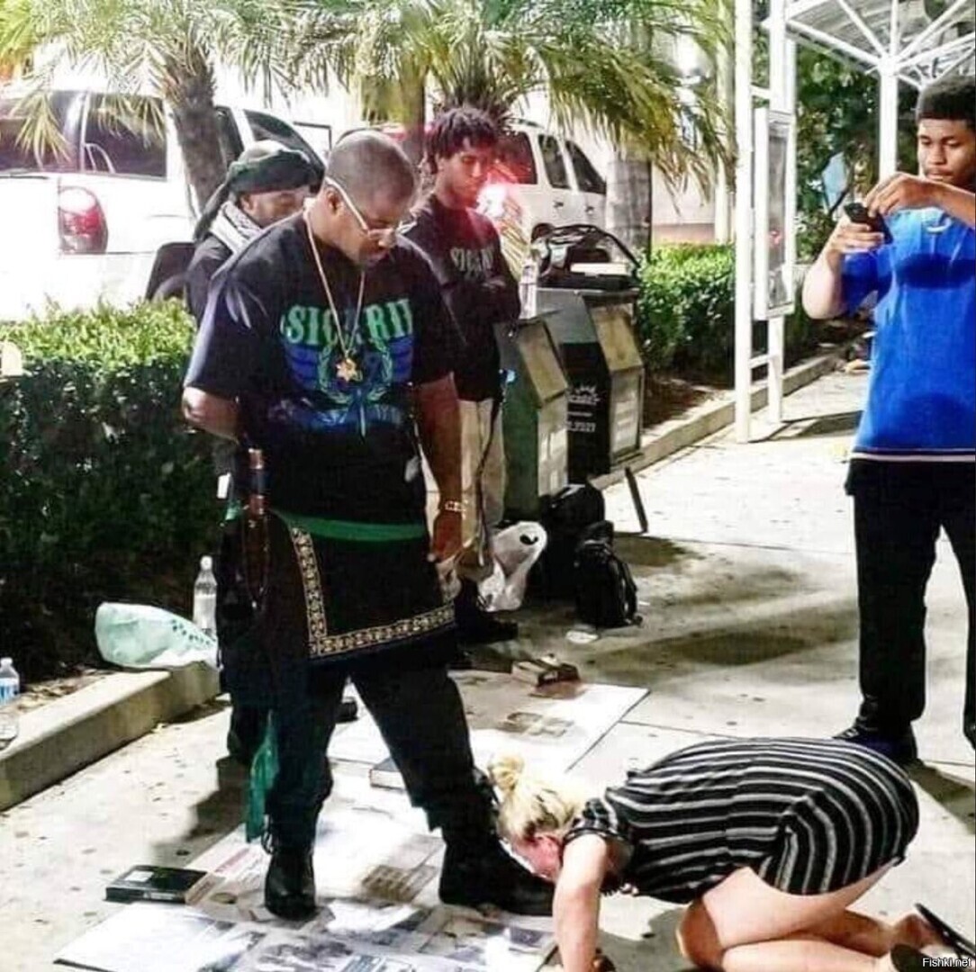 В Америке белые люди в знак смирения целуют ноги чернокожим.