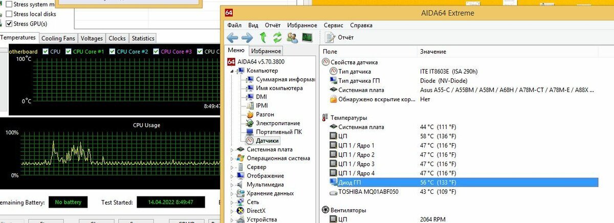 При этом, температура на ХХ снизилась до 36гр против 65гр до переделки, а чтобы прогреть её до 71го градуса, пришлось постараться. "Aida64" не справилась с поставленной задачей.