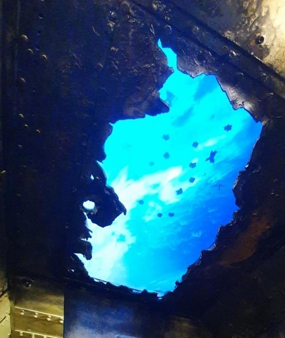 Когда проходишь в следующий вагон, то попадаешь в самое пекло войны, кругом стрельба, рвуться мины, свистят пули, хочется в буквальном смысле упасть на пол и просто проползти или скорее пробежать мимо этого ужаса.