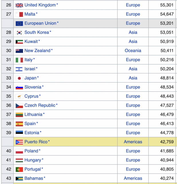 (Обратите внимание, что Пуэрто-Рико, которое принадлежит Америке, имеет значительно более низкий уровень доходов, чем Израиль, как и Польша, которая граничит с Россией, которая, я полагаю, рассматривается как большая угроза американской глобальной гегемонии, чем Сирия.)