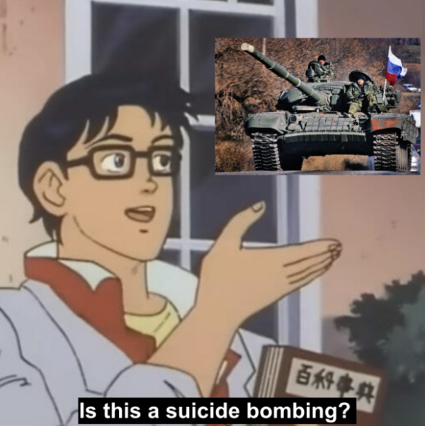 Они рассматривают возможность неправильного использования слова “терроризм”, поскольку это слово имеет негативную коннотацию. Они не рассматривают возможность обвинения русских в том, что они “партизаны” или “партизаны” или любое другое неправильное военное обозначение. Было бы забавно, если бы они обвинили их в “создании конфедерации”. Потому что вы знаете – конфедерация была за рабство, и то, что Россия делает с Украиной, настолько плохо, что это похоже на рабство против украинской демократии.
