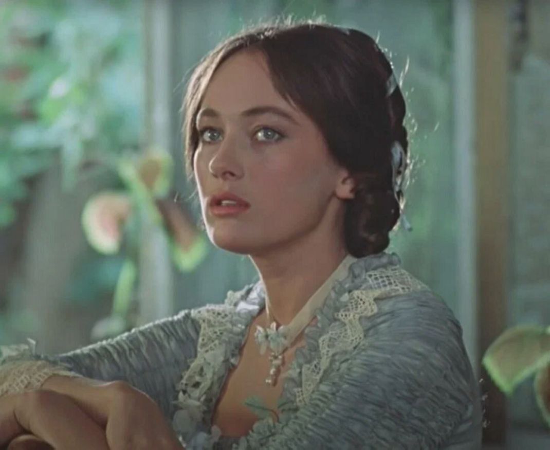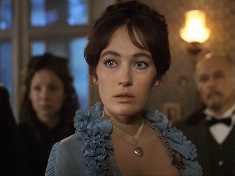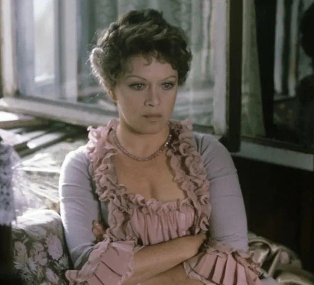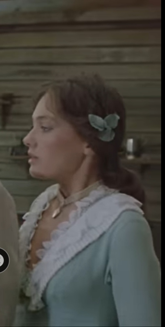 Вторая часть "Жестокого романса" начинается со сцены, в которой Алиса Фрейндлих обсуждает будущее своей дочери с самым богатым купцом города. В этой сцене её шею украшает лента с небольшим бантом и медальоном.