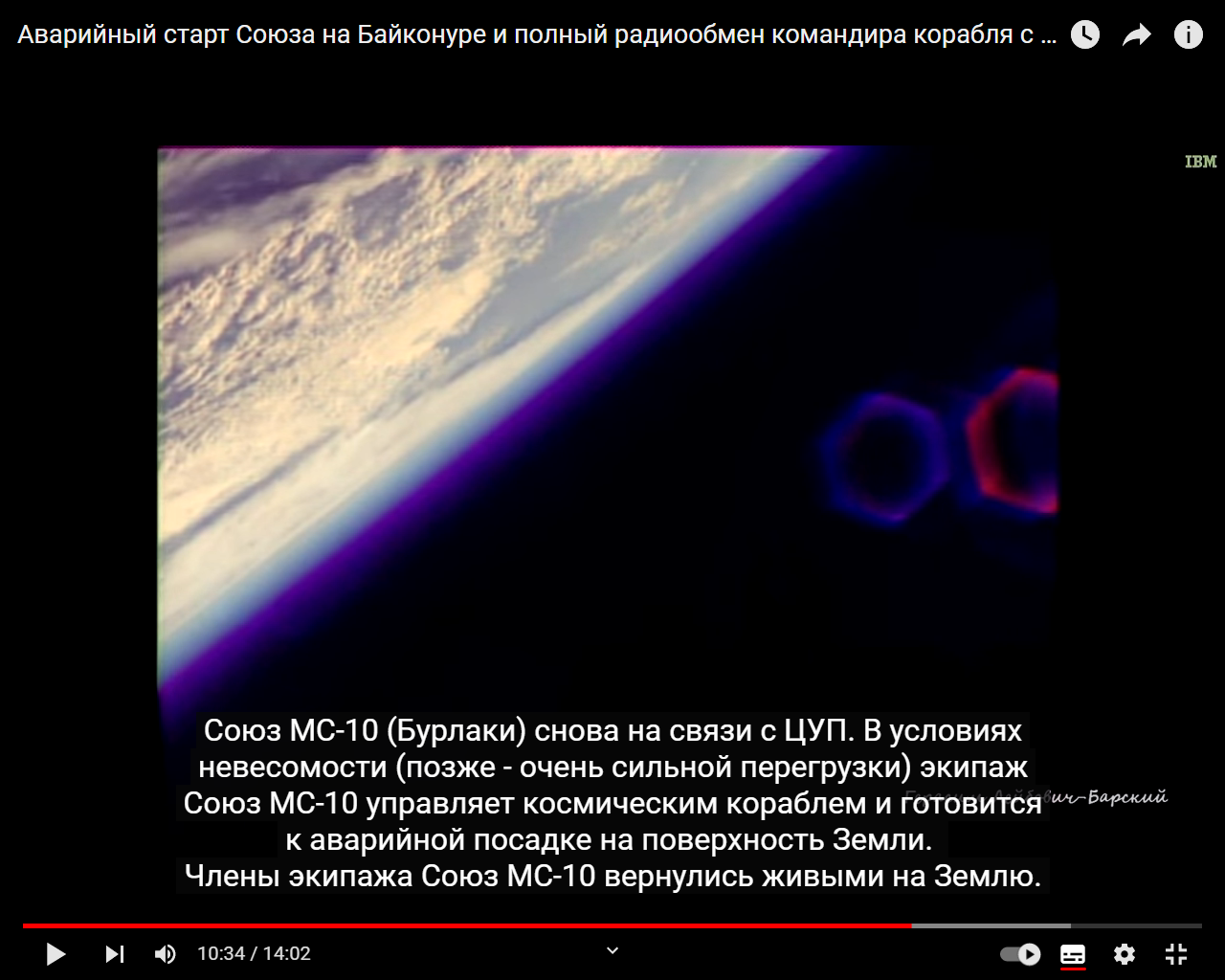Посмотрите на видео, снятое с расстояния, видимо, в пределах сотни километров от поверхности Земли, когда был совершен неудачный запуск российского космического корабля в 2018-м году: