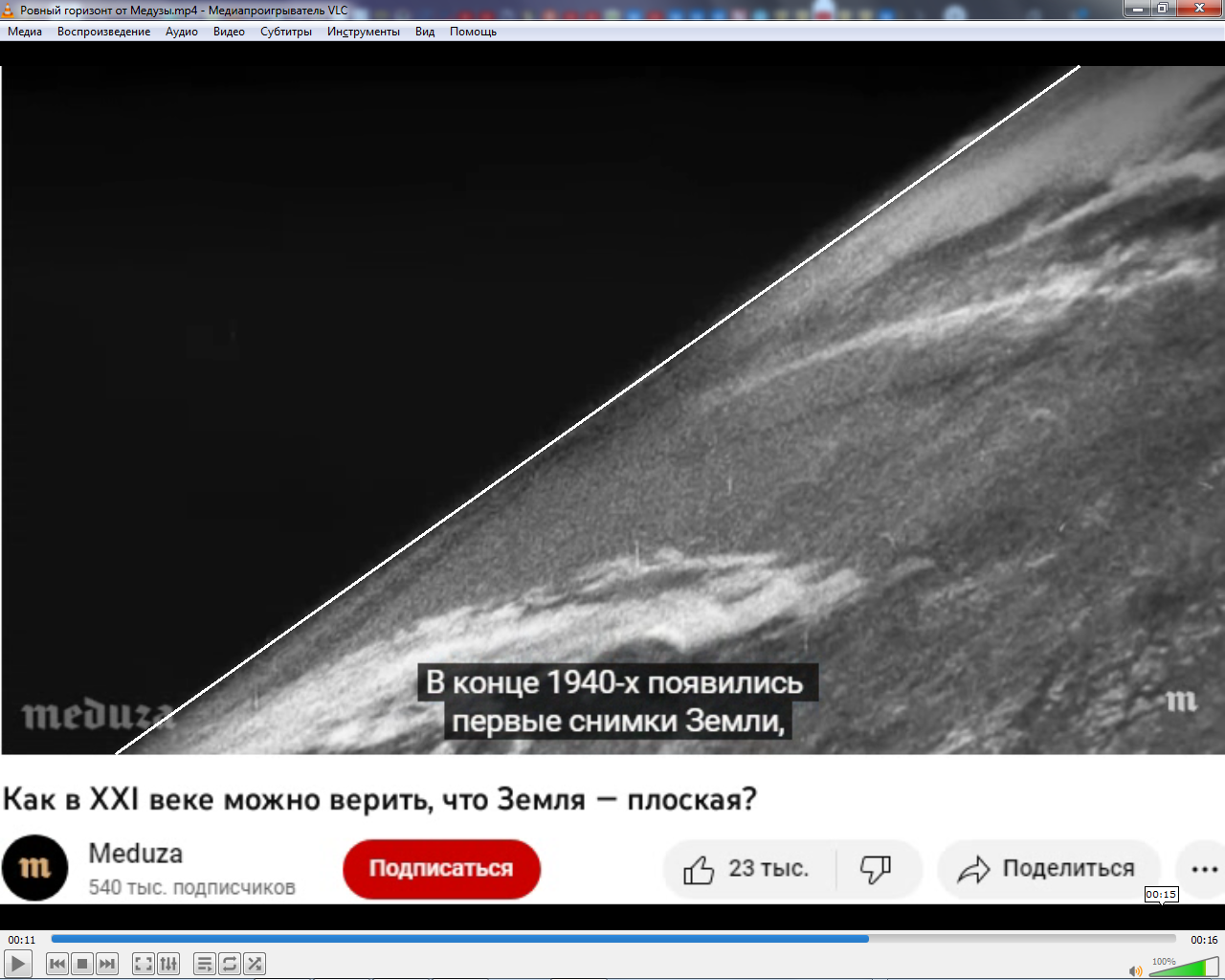 То есть,образованные люди, оказывается, еще со времен Магеллана знали, что Земля круглая (я уже молчу, что круг - это геометрическая плоскость, поэтому заявлять про шарообразную Землю, что она круглая, это лютая безграмотность. Ну, да ладно, простим этой Медузе, пропагандонке фэйковым лжеистинам). Тут другой момент: эта Медуза даже то, что она в ролике выдала на общее обозрение, не поняла, какую глупость спорола. Говоря про кругло-шарообразную Землю, тут же выдала реальный снимок ровного и плоского горизонта. Вот, у меня в связи с этим фактом возникает простой вопрос: у шароверов имеется хоть какой-то кусочек мозгов, которыми они могли бы соображать, чего они нам тут сами заявляют?