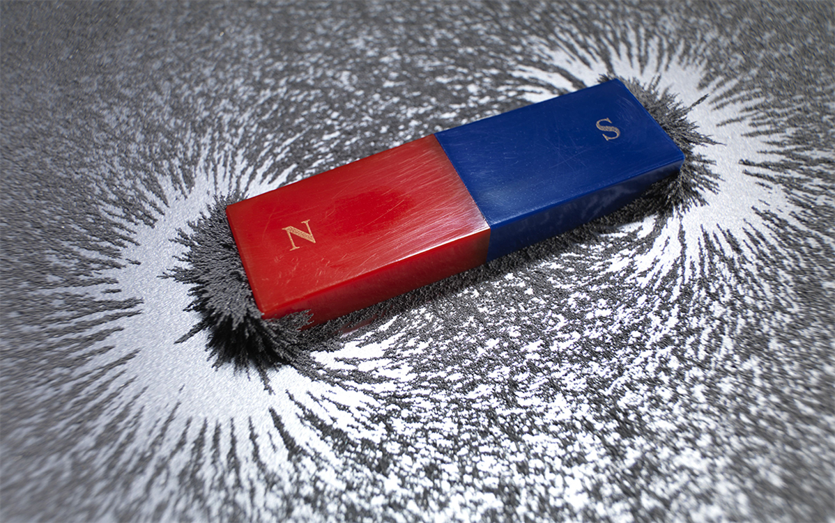 Магнитные субстанции вокруг магнита также собираются в подобие шара.