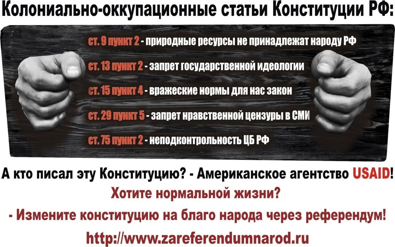 Может пора выйти из-под внешнего управления и изменить Конституцию, путём законного народного волеизьявления на Референдуме.