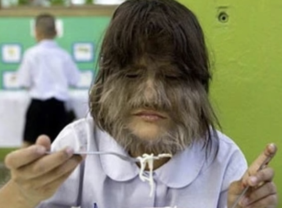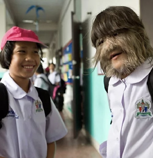 «Жертвой» этой мутации стала одна девочка из Бангкока, которая на своём лице привыкла видеть растительность в виде волос.