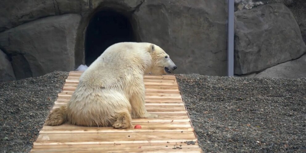 Белый медведь из Диксона, останется в Московском зоопарке.
