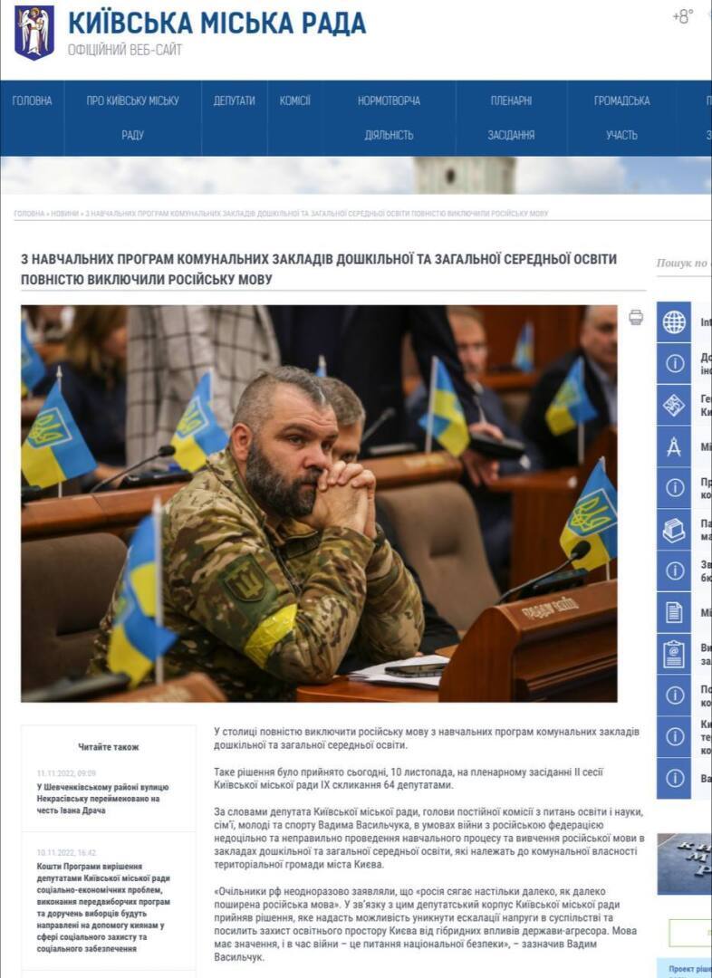 За это заключение на пленарном заседании проголосовали 64 депутата горсовета. По текстам председателя комиссии по задачам образования и науки, семьи, молодежи и спорта Вадима Васильчука, «в критериях войны бессмысленно и неверно проведение учебного процесса и исследование российского языка».